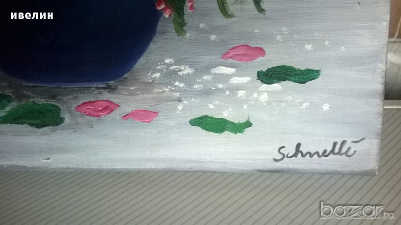 картина-цветя,масло на платно с подрамка,подписана.размери 51см/40см