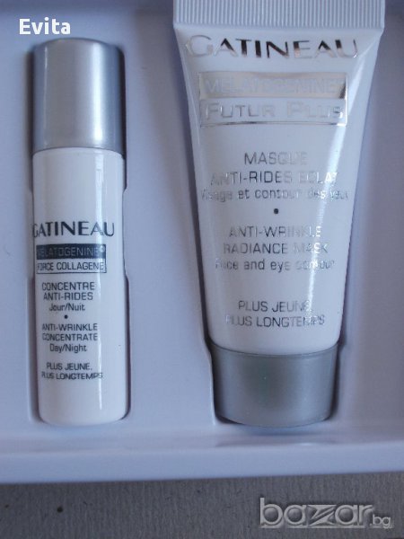 MELATOGENINE FORCE COLLAGENE е най-добрия противобръчков бустър. Съдържа 3 продукта в оригиналната опаковка: -Крем за сваляне на грима+тоник - 3мл. -Melatogenine Force Collagene концентрат п/в бръчки, (сутрин и вечер) -5мл. -Melatogenine Futur Plus маска п/в бръчки с изплакване за лице и около очите, 10 мин 2-3 пъти седмично - 15 мл. Само сега - При покупка на втори артикул от обявите ми (в една и съща поръчка), получавате 10% намаление в/у по-ниската стойност. При 3 артикула-10% намаление в/у цялата поръчка