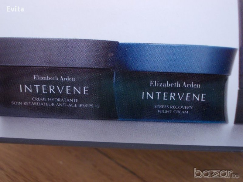 Elizabeth Arden InterveneДневен почистващ ексфолиант 3 in 1 - 50мл-уникална формула с пяна – почиства,нежно ексфолира и подгот-вя кожата за хидратиращото действие на крема - с антистареещо действие за сияйна кожа,свива порите,идеален за основа за грим. -Дневен крем -7мл- хидратиращ крем за възстановяване на блясъка с SPF 15 - подхранва,изглажда,намалява появата но фини линии и бръчки, Нощен крем7мл - възстановяващ крем против стрес. Модерна технология,предназначена за нуждите на жени и мъже между 25 и 39 г. Предотвратява първите признаци на стереене