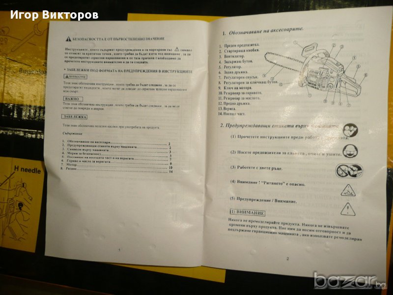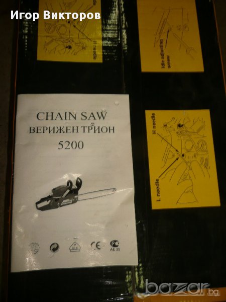 Към резачка даваме к-т инструменти - 2 шестограма, ключ за свещи, отвертка, пиличка за веригата