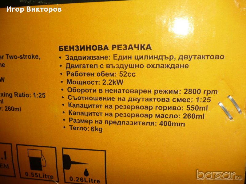 Обем бензинов резервоар: 550 мл