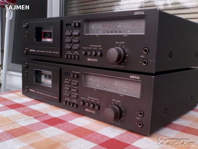 Продавам топ модел двуглави декове Rotel rd-1000m 1982 - 1984г декът е с феритни глави запис 1:1 декът е с много красиви и големи индикатори ,много точни индикатори при запис и свирине под светка на гнездото масивна и здрава механика глави,мотори,тон ролки,ремъци в пълен оригинал дековете са минали пълна профилактика в сервиз софия тегло 7,7кг дековете са 100% работещи -перфектни цената за един брои дек .........Всичката техника която продавам е в магазинно състояние . Виждат се и другите мой обяви и в какво състояние са, който е купувал от мен знае за какво иде реч.ЦЕНА 500 ЛВ