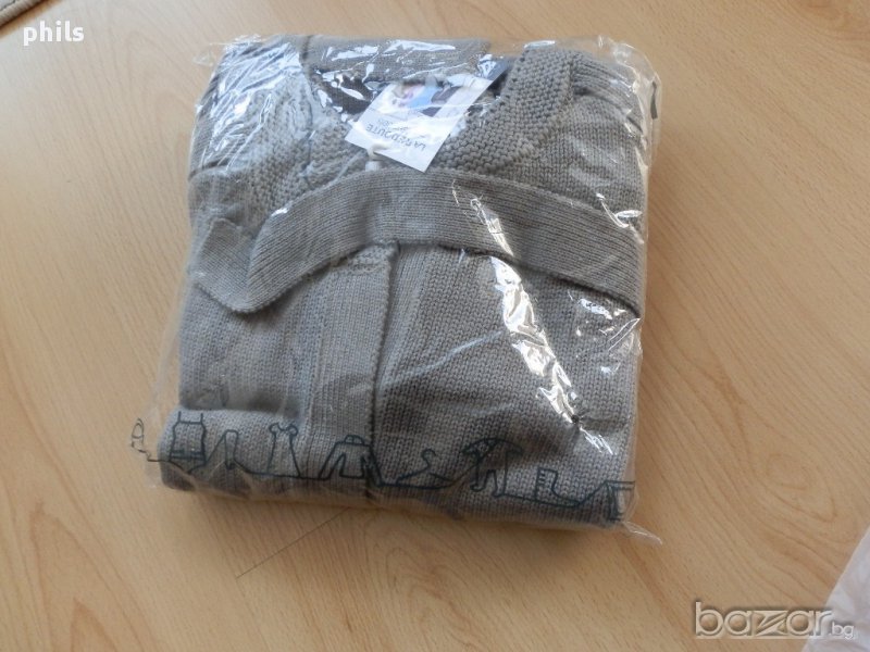 Памучна жилетка с къс ръкав, с прихлупване, без закопчаване,с два джоба. Плътна и стегната плетка. Бледорозов цвят и друга в сиво. В зависимост от прихлупването може да се носи ог дами размер М, Л. ХЛ Дължина 75 см, под мишници без прихлупване 51см ханш 51-52 см Имам още един, по-голям размер , дължина 77 см, бюст 52-53 см, ханш 53-54 см.
