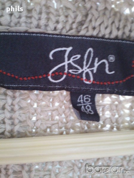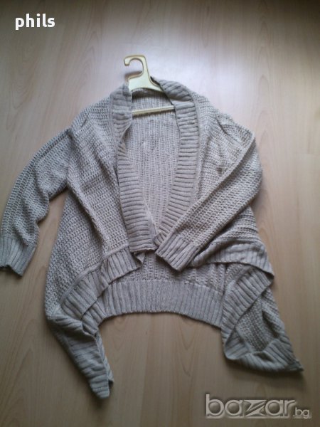 асиметрична жилетка 46 френска номерация, но е уголемена размери- в най дългата си част е дълга 95 см, ръкав 66 см. бюст около 62 см