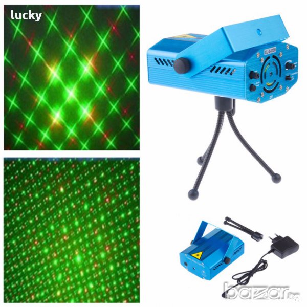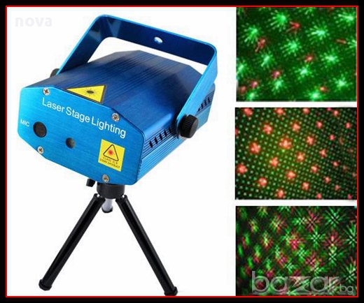 Дискотечен лазер, двуцветен - зелен и червен, със звуков контрол