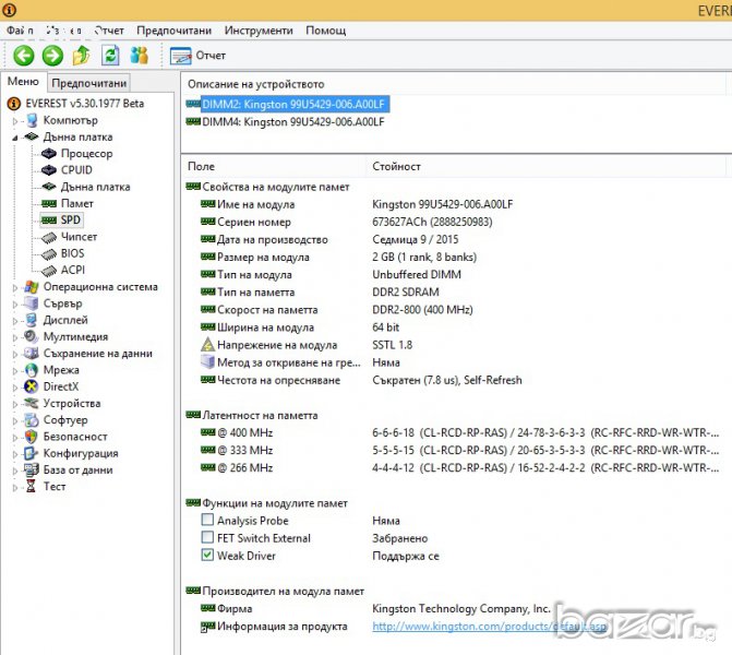 Имам и отдели платки само по 2 ГБ и по 1 ГБ. на 800MHz