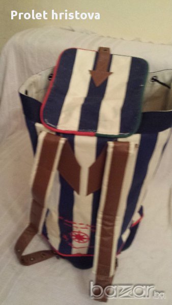 Много здрави чанта и раница,материал,тип брезент,с кожени дръжки,с много джобове.4анта,с размери дълж64см вис 37см раницата вис50см шир 50см марка,,Bj Rucanor,,