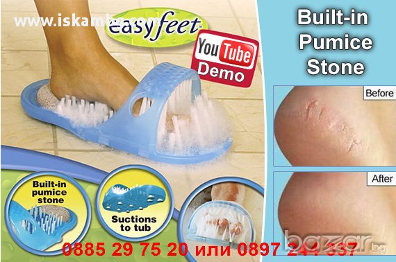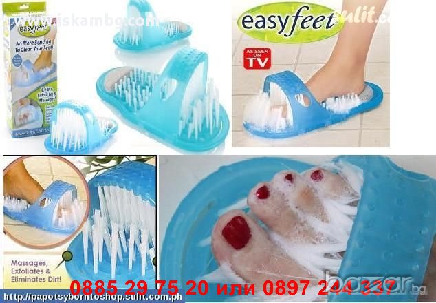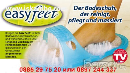 Easy Feet се прикрепя към всяка баня или вана, снабден с 1000 ексфолиращи влакна почиства и масажира краката ви без никакво усилие от ваша страна!Просто поставете течен сапун, раздвижете крака си и се насладете на това невероятно удоволствие!