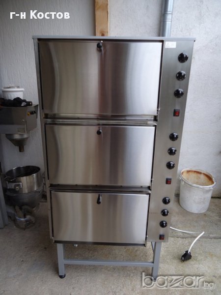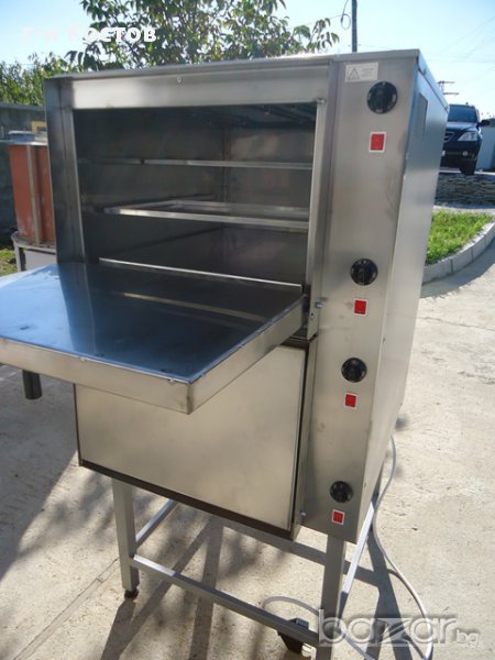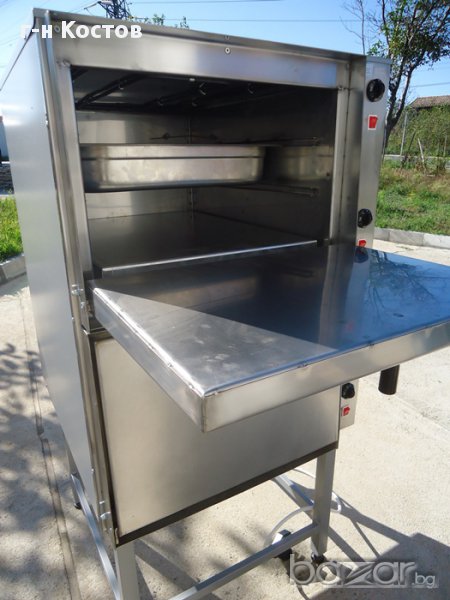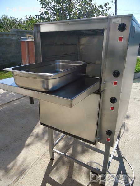1.Фурна за печене и готвене собствено българско производство по лична поръчка и размери за ресторанти заведения на две нива за готвене и печене на агънца и прасенца от неръждаема ламарина са направени камерата и предницата със вратите външни размери височина със краката1.50см.,широчина 74см.,дълбочина 83см., вътрешни размери камера за печене широчина 54см.,дълбочина 68см., височина 30см. Цена – 3200лв.,на три нива Цена – 4800лв.2.Произвеждаме по поръчка абсорбери-вентилация ,работни маси, фурни за пици, фурни за закуски,фурни за ресторанти и заведения,скари тръбни различни размери 60/55см.,80/60см.,1000мм./600мм., принцесници,ход док машини,котлони за палачинки ,внасяме от чужбина оборудване за заведения и ресторанти ново и втора употреба, за дюнер и бърза закуска,тостер преси,дюнер машини, фритюрници,