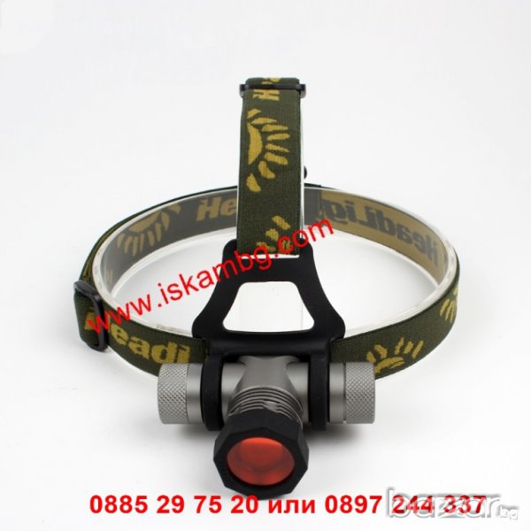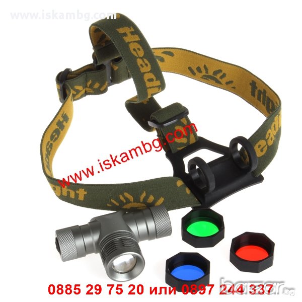 Акумулаторен CREE Q5 LED челник с регулировка на фокуса с 3 филтъра