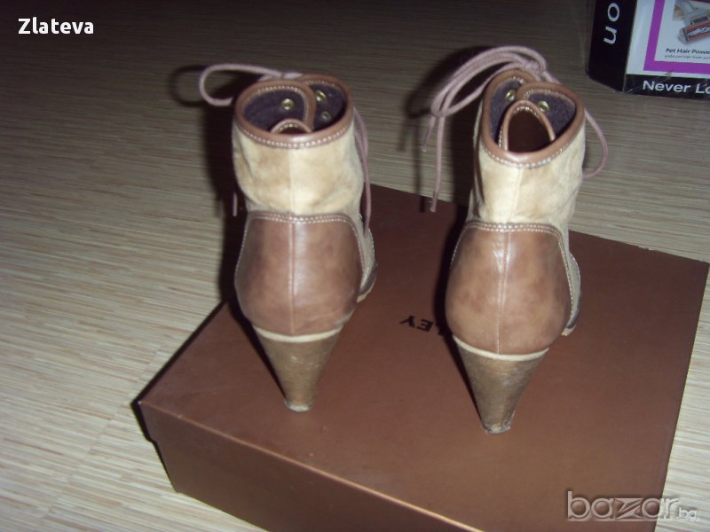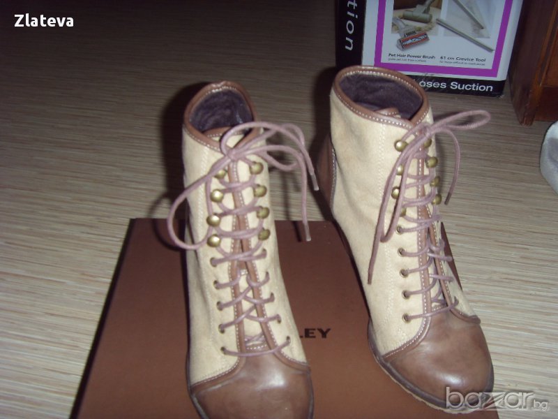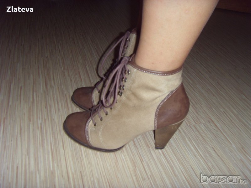 Боти са обувани най много 2 пъти. Височина на тока 9 см. Закупени от Англия на Ню Лук - номерация 5 която отговаря на размер 38 - но са умалени, и отговарят на 37. В отлично състояние което е видно от снимките. За повече информация на лични.