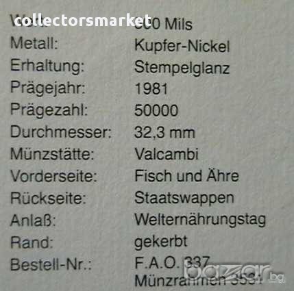 500 милс 1981 FAO, Кипър, снимка 1 - Нумизматика и бонистика - 12330674 500 милс 1981 FAO, Кипър, снимка 2 - Нумизматика и бонистика - 12330674 500 милс 1981 FAO, Кипър, снимка 3 - Нумизматика и бонистика - 12330674 1/3