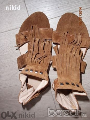 Чисто нови сандали велурен плат,кафяв цвят подметка размер 40,стелка 26 см задно закопчаване с цип