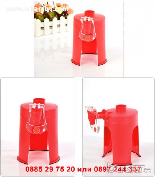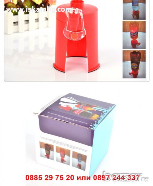 Начинът, по който работи диспенсъра, до голяма степен напомня на картонените кутии с вино, които притежават кранче за наливане. Използва се по следния начин: диспенсърът се поставя на гърлото на двулитрова бутилка и се завърта, докато се захване стабилно. Бутилката се обръща и на дъното и, което вече се пада от горната страна, се продупчва малка дупчица (със специална топлийка, която ще намерите в комплекта). С това приготовленията приключват – вече може да налеете желаното количество течност в чашата си, като натиснете кранчето или го подпрете с чашата си, за да тече продължително.