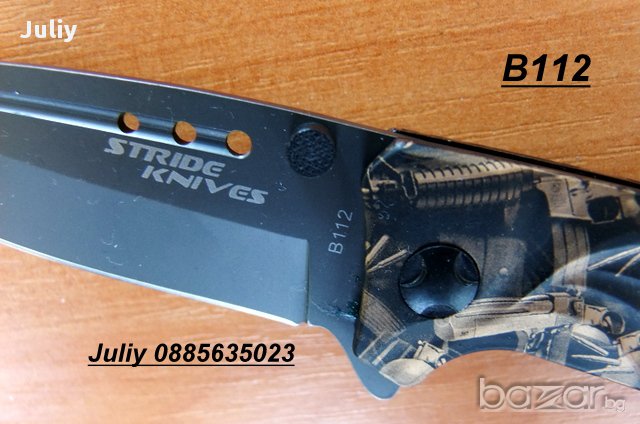 Дръжката е елегантно нагъната, а в края на метална скоба за носене на ножа на на ремък. Острието се блокира и е фиксирано в отворено състояние посредством система за заключване linerlock.