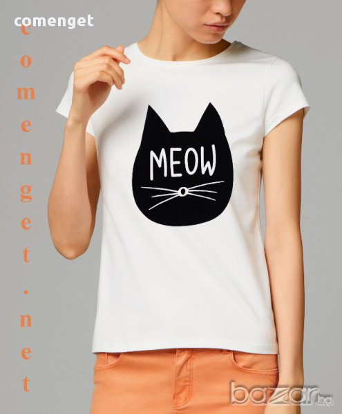 Хит! Дамски тишърт MEOW CAT КОТЕ! Поръчай тениска С Твоя Снимка или идея!