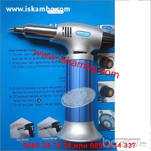 Газова горелка + поялник до 1300 C - ГОЛЯМ - код 0449