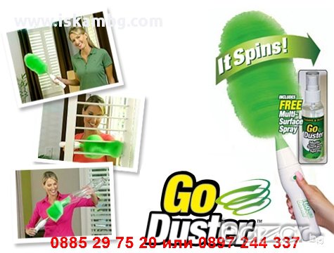 Въртящата се четка за почистване на прах Go Duster е революционно моторизирано средство за почистване на прах - по-бързо, по-лесно и по-забавно отколкото някога си си представяла. Просто натисни бутона и главата на четката започва да се върти и да събира прашинки за секунди.