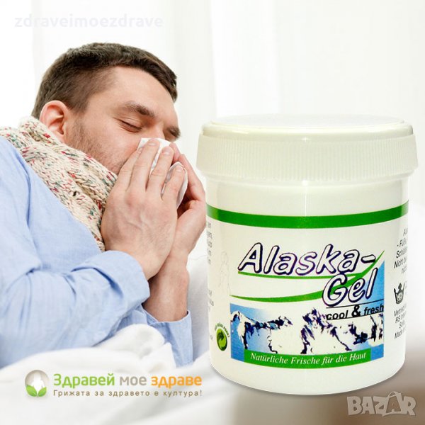 Гел Аляска 100 мл. Предимства:Освежава и охлажда благодарение на евкалипта и ментола в него. Облекчава мускулните и ставните болки За масаж на болезнени места (при хематоми). Помага за сваляне на температурата. При настинки (за инхалации) Ускорява циркулацията и съживява кожата. Естествена ледена свежест за кожата при високи температури и големи натоварвания. Носи приятно чувство на свежест и прохлада през горещите летни дни, верен приятел по време на почивка (на плажа, в планината). Освежава при дълги пътувания с кола, разходки, при главоболие...