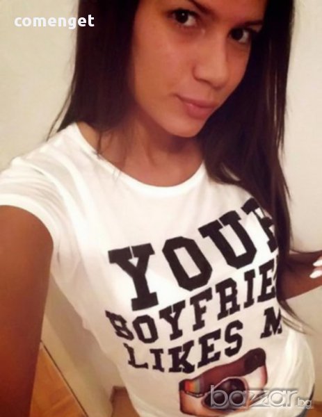 УНИКАЛНИ дамски тениски YOUR BOYFRIEND LIKES с къс ръкав с актуален INSTAGRAM дизайн! Разполагаме с всички размери от S до 3XL! В наличност 10 ЦВЯТА!
