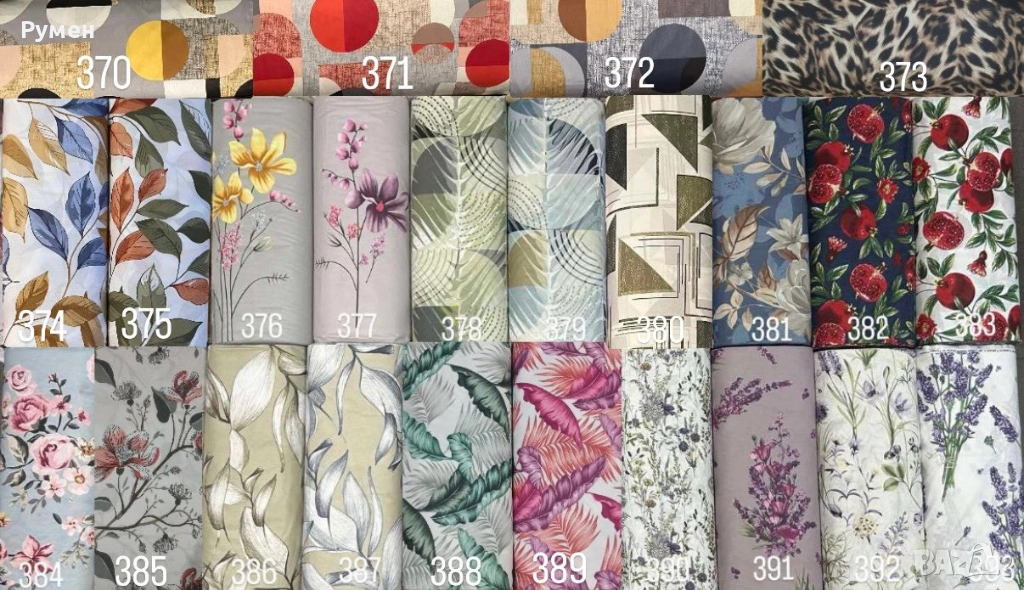 Десените с №300 до 424 са ранфорс 100% памук 7,04 лв -3,60евро/метър ширина 240см