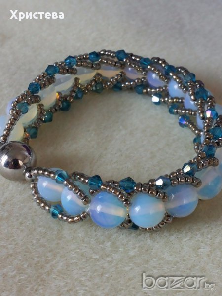 Ръчно изработена гривна от мъниста тохо,лунен камък и чешки кристалчета с магнитна метална закопчалка.Дължина на гривната 16,5см.С подходящи към гривната обеци.
