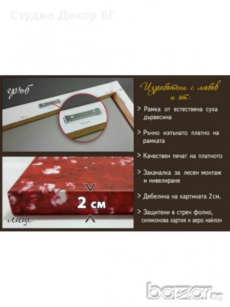 Картината е изработена от подрамка от естествено дърво и изпънато на нея отпечатано платно.