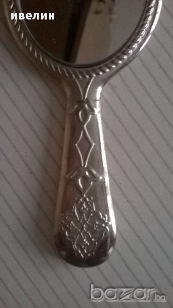 метално огледалце.предполагам посребрено.размери 13см.,само стъклото 6,5см/4,5см.