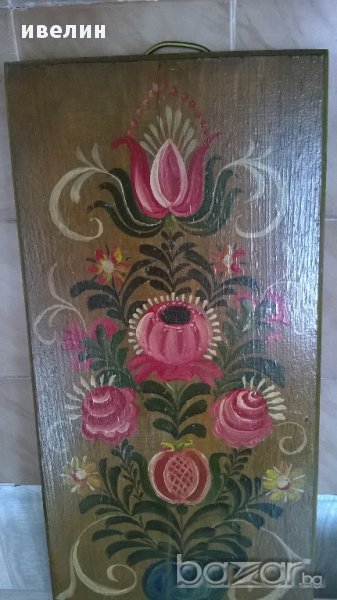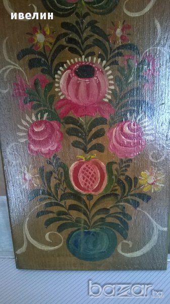 стара картина-цветя.рисувана на дърво .размери 45см/21см
