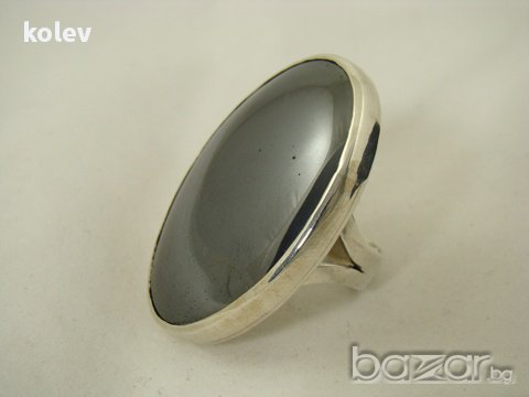 по поръчка!СРЕБЪРЕН ПРЪСТЕН С натурален ХЕМАТИТ 40/30 мм, размер отворен -59/60+