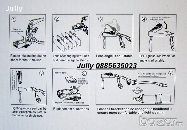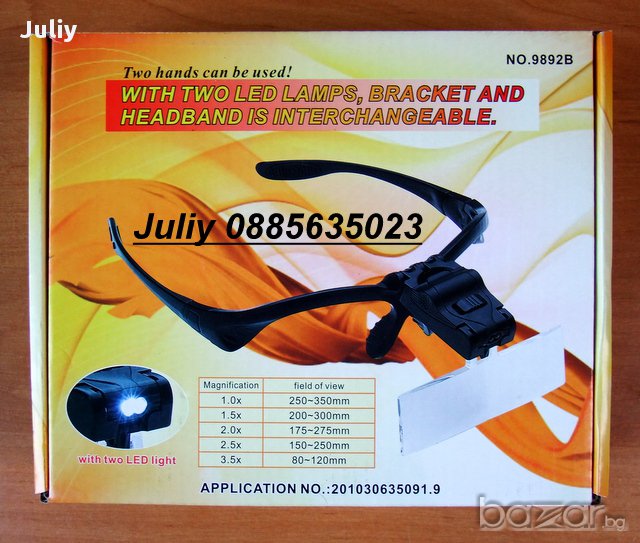 Представлява приспособление тип очила, които при поставяне на главата ,освобождават двете ръце за по-удобна работа. Отгоре върху рамката на очилата е монтиран малък LED фенер за удобство при работа. Към рамката ,пред очите се закрепят увеличителните лещи тип очила с различно увеличение според нуждите.