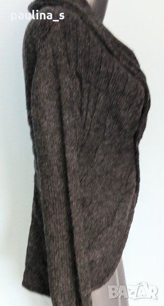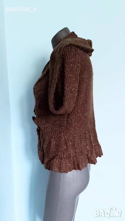 1️⃣. XL / 3XL - Универсален размер / "Scooter" knitwear. Цената е крайна 39,99лв / 20 евро. Къса вълнена жилетка или топ, отворен модел! забола съм сребърната брошка на обратно! Моделът е с богата сложна яка и е декориран с множество хоризонтални плетеници, започващи от ревера и завършващи със заоблена долна част. Дрехата е топла, 50%вълнено съдържание на преждата, и не се степва. Има еластичност поради 40%акрил и 10% ликра. Евър актуална за сезона дреха красива, и предизвикателна с дълбокото деколте. Перфектна, без дефекти, една бройка, аутлет, универсален размер!