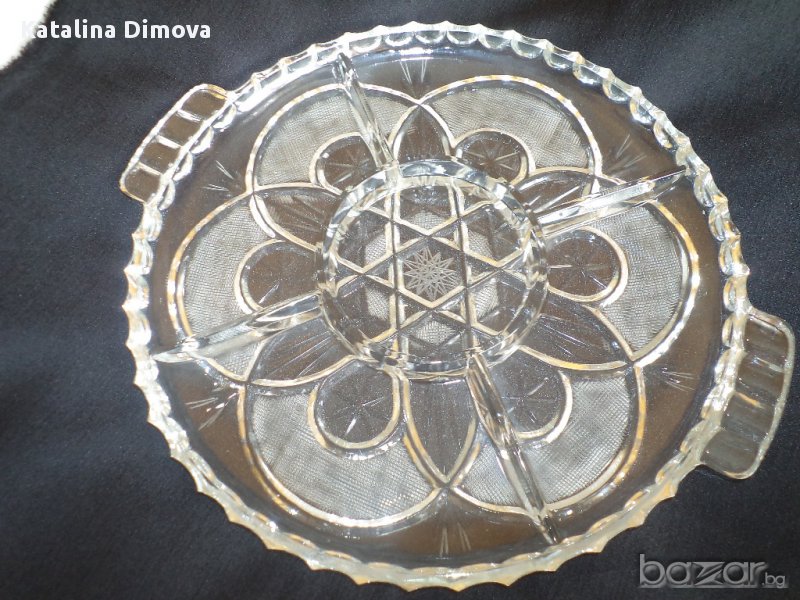 Продавам плато за ордьоври, салати кристално, запазено с 4 деления → Обява 12465182