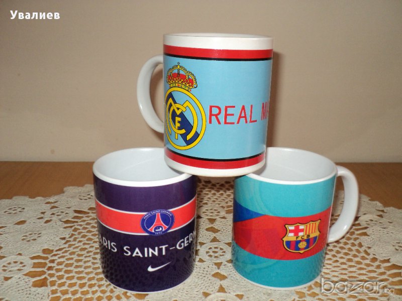 2. Продавам чаши на - Арсенал - Челси - Манчестър Сити -Реал Мадрид - Барселона - Рома -Интер - Байерн М. - П.С.Ж. - с размери - вис. 9.5 см. - шир. 8 см - цена - 5 лв