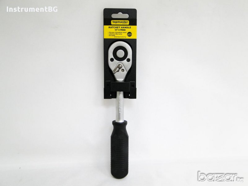 Тресчотка усилена TOPMASTER с размери 1/2" е изработена от високачествена стомана, осигуряваща издръжливост. Тресчотката притежава гумена дръжка, която прави захвата на дланта по-стабилна. Инструментът е с ергономичен дизайн, което позволява употребата му на труднодостъпни места.