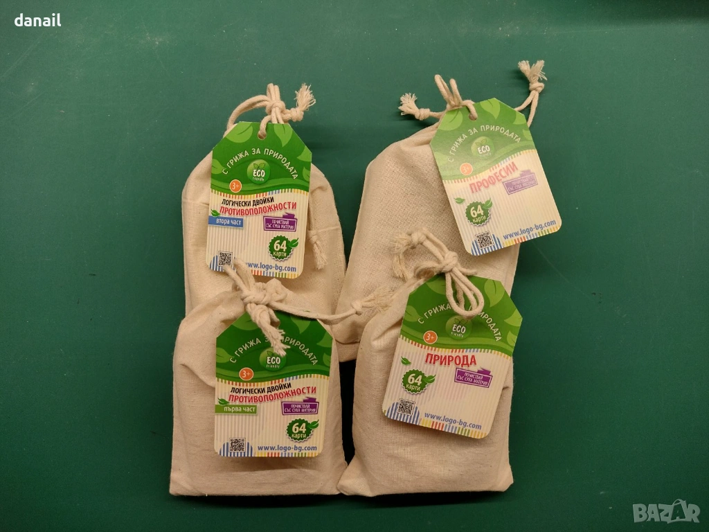 Към карти - ЕКО (карти от материал картон и опаковка текстилна торбичка с връзка):