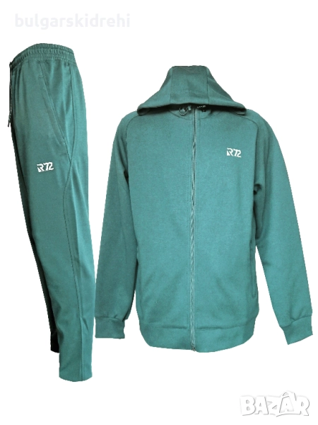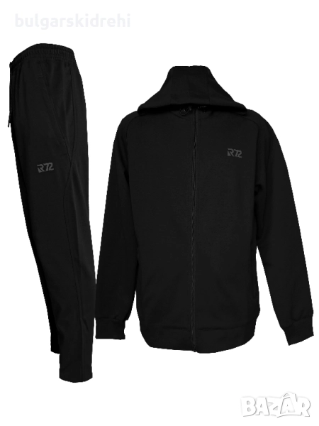 Ватиран спортен екип от две части. Долнище с ципове и кантове от 3-конечна вата. Горнище с качулка.