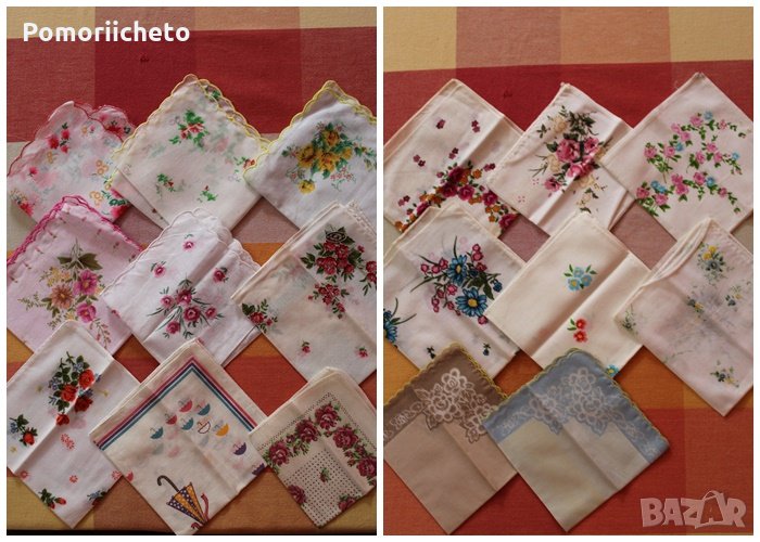 Посочената цена е на брой мъжка/дамска/детска кърпичка. Не се отнася за дантелените кърпички. Мъжки кърпички - 19 броя. Дамски и детски кърпички за сурвачки. Дамски кърпички - 38 броя. Детски кърпички - 7 броя. При закупуване на всички дамски, мъжки и детски кърпички - общата цена е 50 лв. Уникални колекционерски кърпички с дантела, направена ръчно на една кука - 9 бр., 10 лв бройката