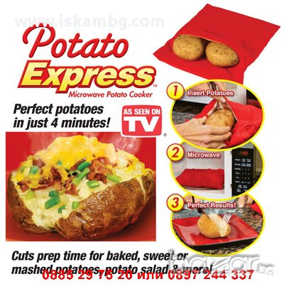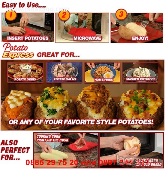 С Potato Express ще си приготвите перфектни печени картофи само за 4 минути в микровълнова фурна