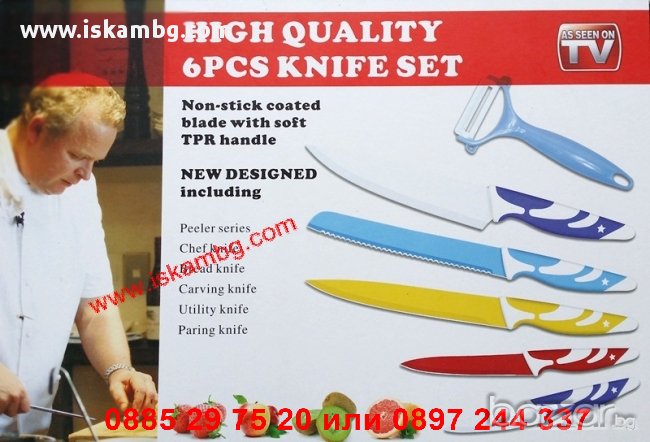 Комплект от 5бр. ножа с керамично покритие и керамична белачка.