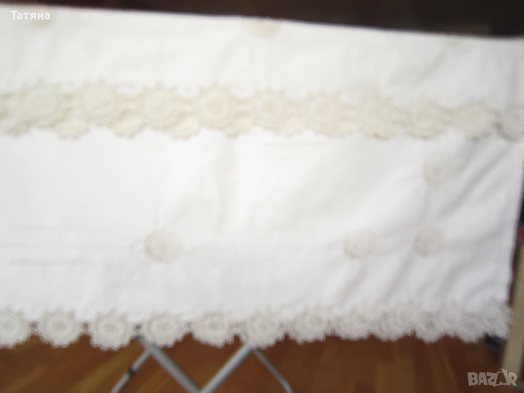 Снимки 8 -14; ЧАРШАФИ - 2 броя ;Размери ; 2 м./132см,което включва 126см памучно платно + 6см РЯЗАНА ДАНТЕЛА;Цвят -млечно бял /не е искрящо бяло/;Много стари ,но никога не са ползвани. ЦЕНА --60€ за брой.