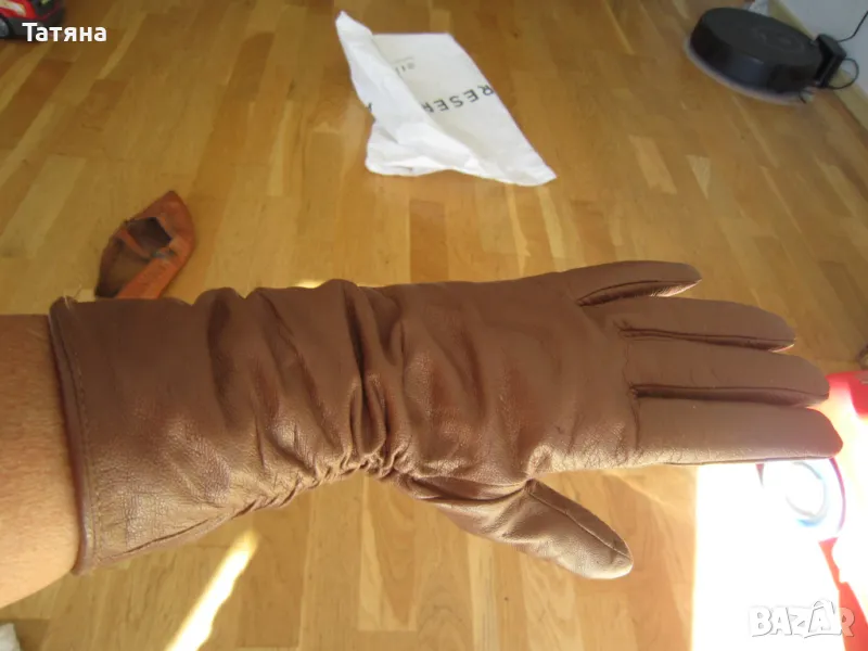 РЪКАВИЦИ РАЗМЕР 8,5 С ВЪЛНЕНА ПЛЕТЕНА ПОДПЛАТА .снимки 1-2; Дължина -24см ;Обиколка над китката -20см;ЦЕНА -12 €