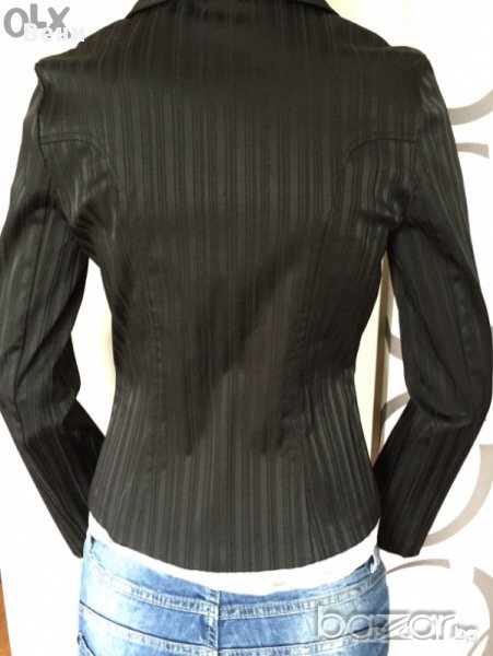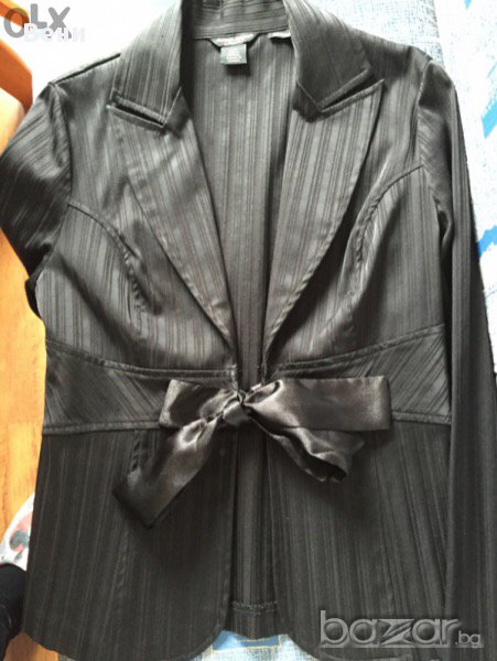 Сако GUESS спортно-елегантно, М размер, черно лъскаво със сатенен колан.