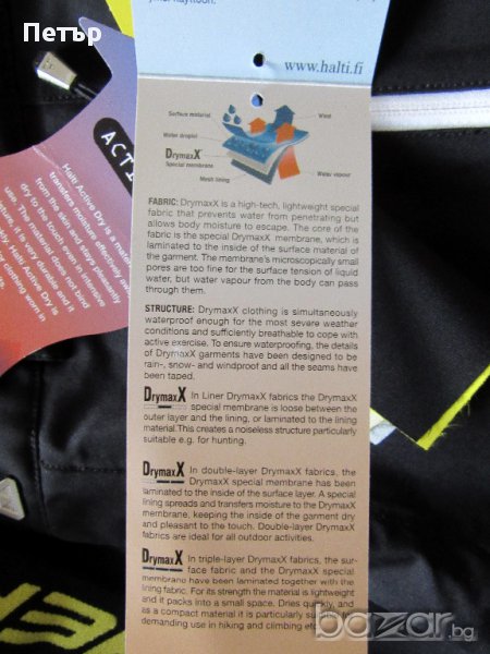 -Материалът, от който е изработен е Drymaxx- облеклото е достатъчно непроницаемо дори и с много тежки метеорологични условия, но може едновременно да пропуска достатъчно влага на тяло с активно движение. Така DryMaxx- дрехите са водоустойчиви, всички шевове са с лепени шевове.