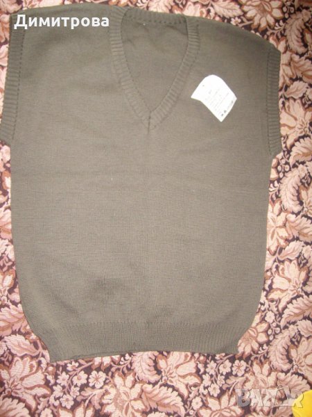 5. Чисто нов мъжки пуловер без ръкав с бод деколте - машинно плетиво. Цвят маслено зелен. Размер 182/100. Цена - 5..11 €/10 лв.