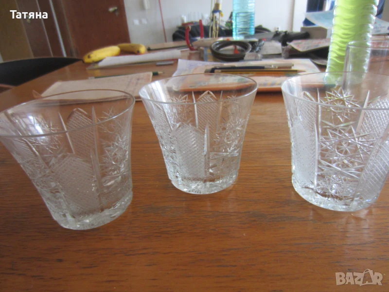 Снимки 16-17 ЧАШИ ЗА УИСКИ -3бр Размери- дъно -6см ;Височина -8.5см ;Отвор -9см ;ЗЕНА -22 € за 1 брой