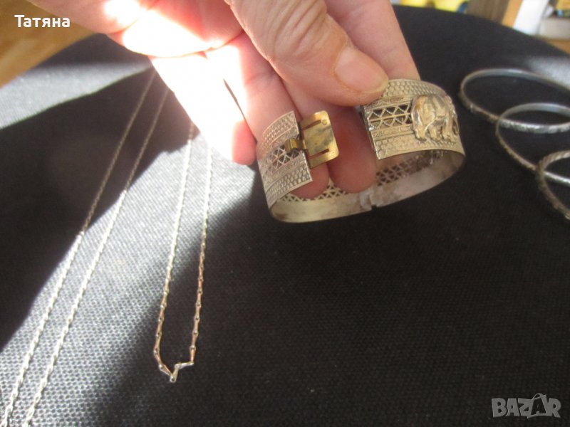 Синджирчетата са от 50-те години и са български .Купувани са от СБХ/Съюза на българските художници/.Плетката е много здрава.Пробата е 925.