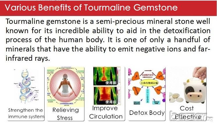 Турмалинът съдържа до 50 природни микроелемента, полезни за човека. Възстановява енергийното равновесие в организма и стимулира кръвообращението, излъчва инфрачервена топлина и отрицателни йони, генерира магнитно поле, активира клетките и балансира биотока в организма