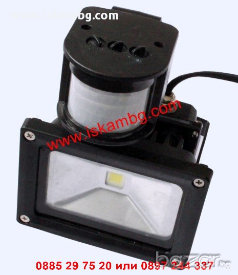 LED Прожектор с датчик за движение задейства се от преминаващи хора може да се регулира обхвата на датчика до 12 метра както и колко време след това прожекторът да бъде включен в интервала от 10секунди до 7 минути - консумира само 20 вата и отдава над 2000 лумена. С него може да спестите до 90% от разходите си за енергия консумира само 20 вата и с него може да замените старите си халогенни прожектори с мощност до 200W. Здравият му непромокаем корпус е подходящ за използване на открито има много висока степен на защита. ЛЕД прожектори от подобен вид се използват пред входни врати гаражи или за охрана.
