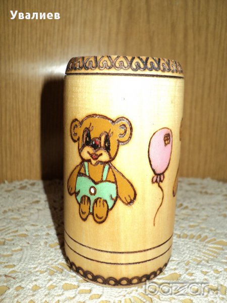 3. Дървен моливник с детски мотиви ново - с размери - вис. 105 мм. шир. 55 мм. - ЦЕНА - 4 лв